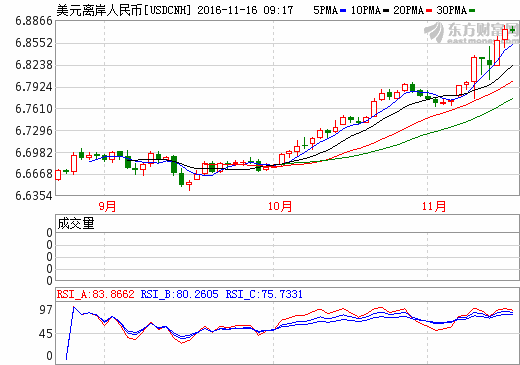 截至15日16:30分,人民幣對美元即期匯率收于6.8530。與此同時,離岸人民幣對美元匯率在15日跌破6.87關口,再創歷史新低。據媒體援引外匯交易員的話稱,近日不少中資企業都在離岸市場加大購匯額度,寧愿采取風險較大的“封頂遠期”期權組合提前鎖定離岸人民幣兌換美元的成本。