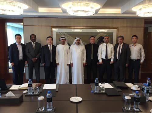 Ras Al Khaimah水泥公司總經理Mr.Ahmed AL Neaimi,印度咨詢公司代表,中材節能總裁助理王毅、余熱發電事業部相關人員參加簽約儀式。