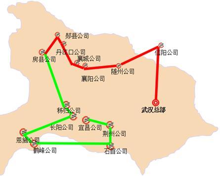 另外,賽事組委會還將“1000公里”的數(shù)字轉(zhuǎn)化為圖形,根據(jù)分公司的區(qū)域分布,共設(shè)定湖北東區(qū)線、湖北西區(qū)線、南部區(qū)域線、西部區(qū)域線、云南區(qū)域線、綜合線共6條虛擬路線圖,每條線路全長統(tǒng)一為1000公里,各參賽團(tuán)隊每到達(dá)線路中的一個途經(jīng)點,線條將由紅色轉(zhuǎn)為綠色,點圈由小變大,表示此段路線已完成。