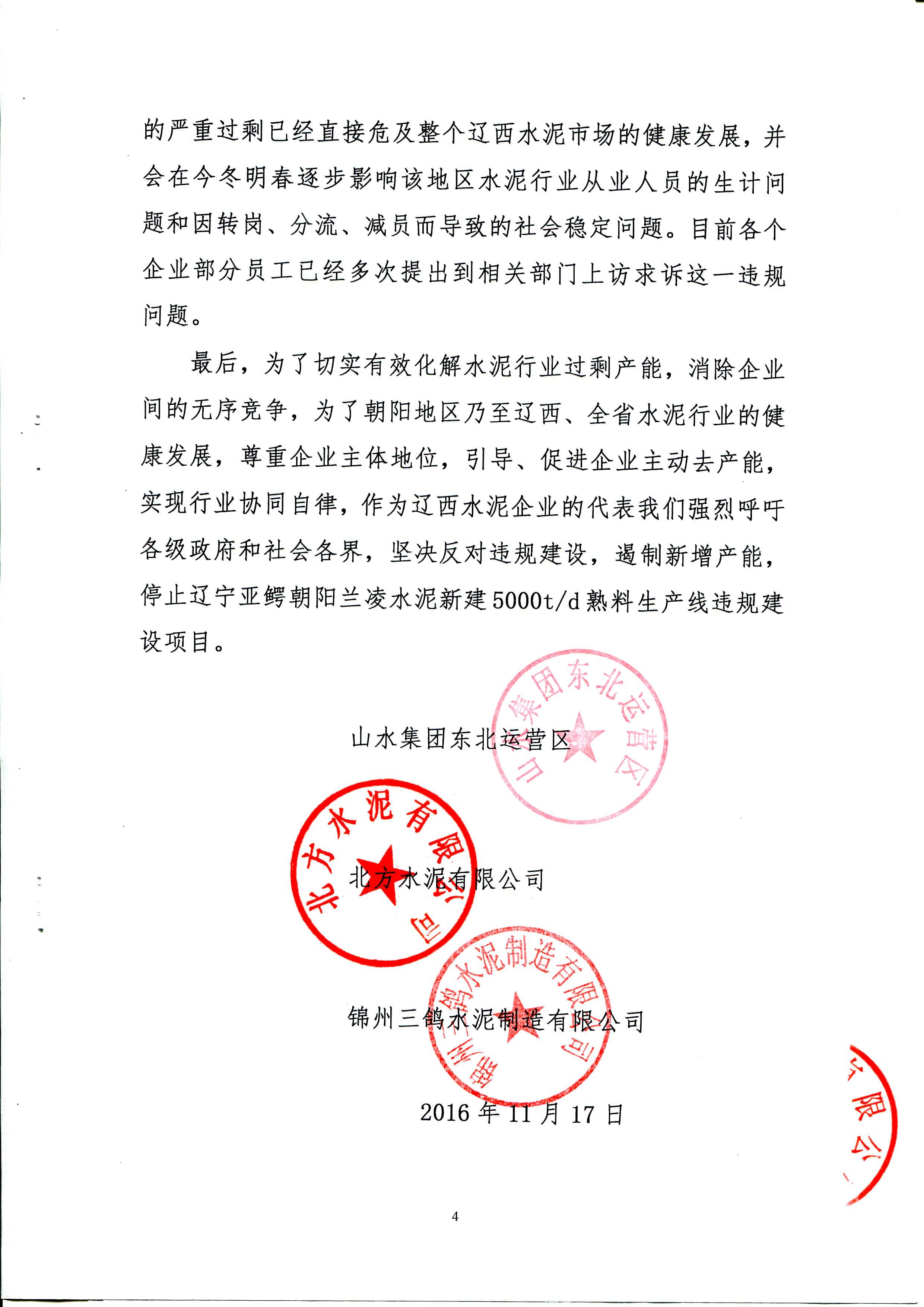 山水水泥、北方水泥、三鴿水泥、遼寧建材協會聯名舉報蘭凌水泥違規建線