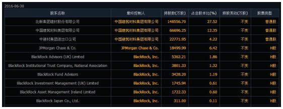 中國建材前10大股東排名,截圖時間為2016年12月26日