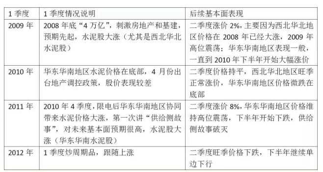 水泥股歷年1季度數(shù)據(jù)表現(xiàn)