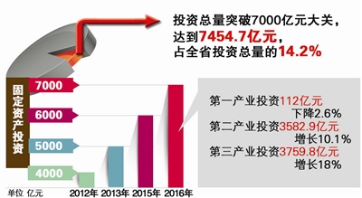 市統計局1月21日發布的數據顯示:青島市固定資產投資繼2012年實現4000億元、2013年跨越5000億元、2015年突破6000億元大關之后,2016年又邁上7000億元新臺階,總量和增速均“領跑”全省。
