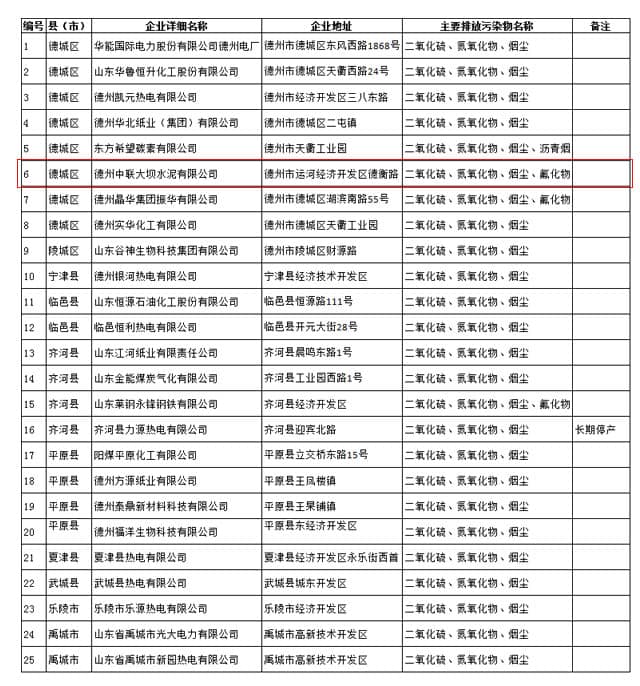 (德州中聯大壩水泥有限公司),2017年表中所涉及的企業可能會被被被重點監控。