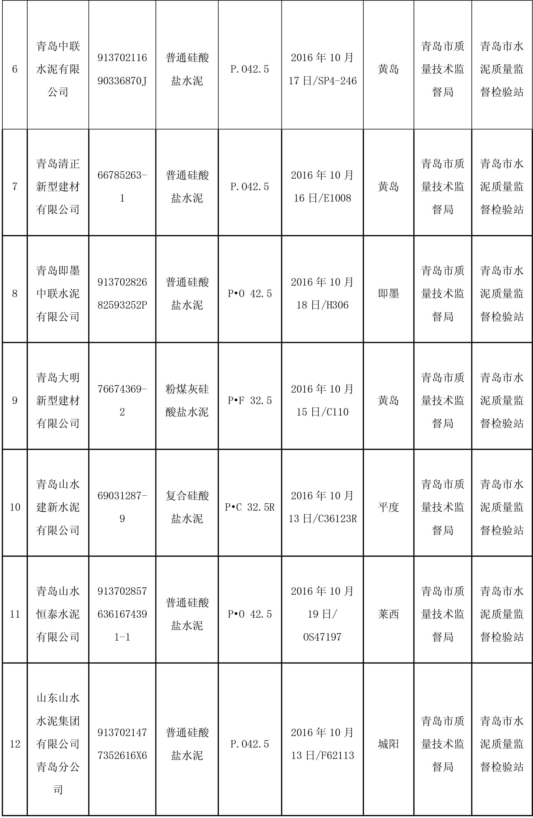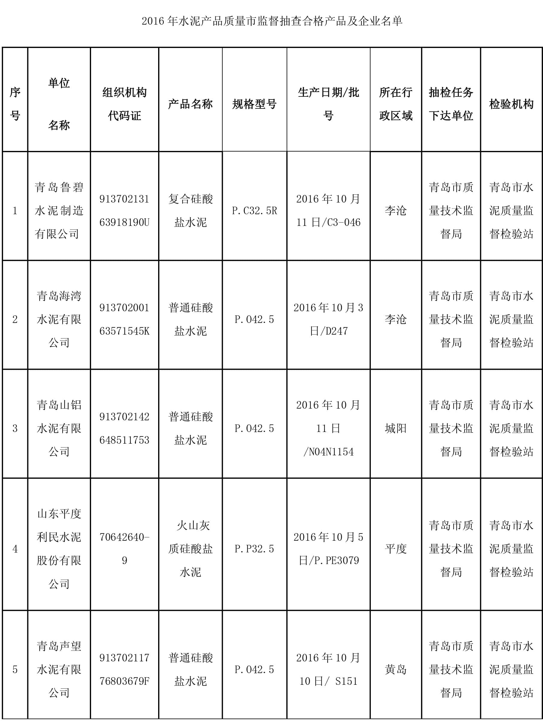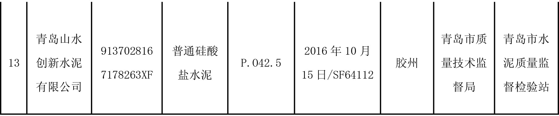 2月8日,青島市質量技術監督局官網公布2016年水泥產品質量市監督抽查結果,本次抽查了 13家企業生產的13批次產品,監督抽查結果全部合格。