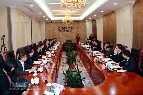 日前,海螺集團公司黨委書記、董事長高登榜在集團總部會見了到訪的華潤集團總經理助理、華潤水泥董事局主席周龍山。華潤水泥總裁紀友紅,高級副總裁張量、王軍祥,副總裁劉貴新、何友棟、鄭青宏。集團公司總經理任勇、副總經理王建超、總經理助理丁鋒等參加了會見。