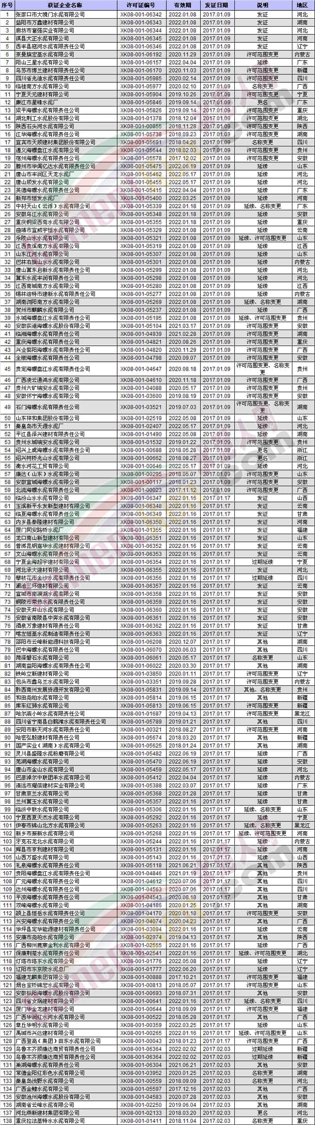 今年1月至今質檢總局核發生產許可證的水泥企業共138家。其中: