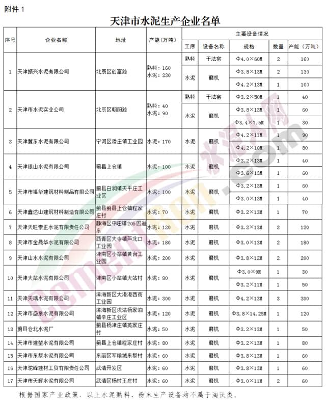 天津市工業和信息化委今日公示天津市水泥、玻璃行業產能現狀清單,17家水泥企業被公示。其中區域水泥龍頭天津山水水泥有限公司、天津冀東水泥有限公司、天津天瑞水泥有限公司均在其列。根據國家產業政策所列17家水泥企業所屬水泥熟料、粉末生產設備均不屬于淘汰類。
