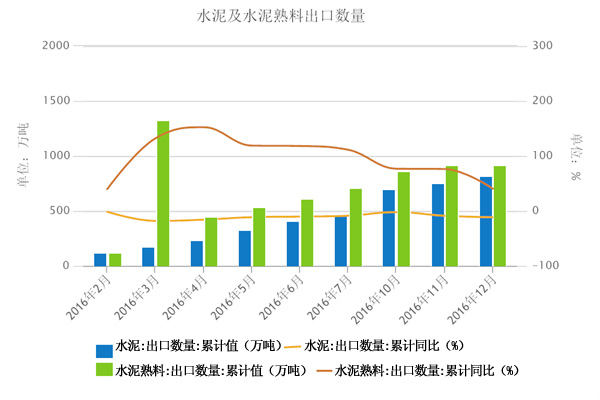 據(jù)有關(guān)數(shù)據(jù)顯示,2016年我國水泥出口數(shù)量為814.63萬噸,同比2015年減少了11.4%,水泥熟料2016年共出口921.23萬噸,累計同比增長了40.5%。