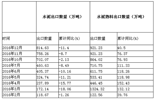 以下為2016年我國水泥及水泥熟料出口數(shù)量統(tǒng)計: