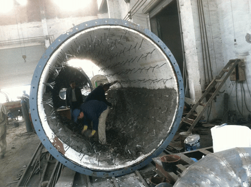 窯胴體鋼板厚度通常采用20、25、28、32毫米等幾種規格。為了增強水泥回轉窯胴體的剛性,減少徑向變形,在大齒圈、輪帶處及回轉窯頭一段等受力較大極易變形的部位用較厚的鋼板,規格有40、50、60、65、75、90毫米的不等。也正因為不同廠家生產的回轉窯,以及回轉窯不同部位的壁厚不同,若用窯外徑來表示窯徑,就沒有統一標準,因此窯徑在設計規范中特指回轉窯胴體的內徑。