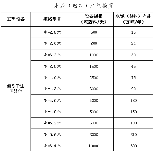 2. 窯徑在上表中兩檔之間的,按插值法計算其產能。
