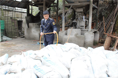 昨日(3月14日)上午,歐陽彪接到群眾舉報,反映位于長沙市岳麓區雷鋒大道尖山安置小區內有一家水泥分裝廠生產假冒他人廠名廠址的水泥,該廠生產條件簡陋,環境惡劣,達不到分裝水泥的要求,同時存在無生產許可證生產及涉嫌產品質量不合格的違法行為。楊親鵬副局長當即指示由省稽查局現場核查、依法處理。省質監局稽查局接到指令后,立即組織省局稽查局和長沙市質監局執法人員對該水泥分裝廠實地進行了執法檢查。