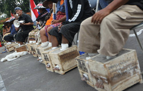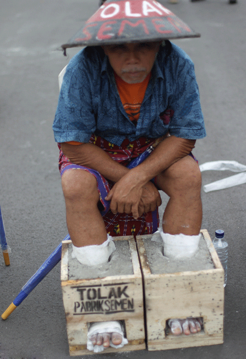 近期開始水泥人網陸續接到一些省市水泥企業及水泥協會的舉報材料,大多是產能過剩地區的水泥企業聯名舉報新建生產線的。中國老百姓的作法就是找“官”作主。在我們收到的舉報材料里不乏當地村民按了手印的聯名證明材料,上訪材料。也有當地企業蓋了紅章的舉報材料等。中國人的“抗議”是“白紙、黑字加紅章”的,相比較印尼的農民抗議建造水泥廠的行為或多或少有些”重口味“了。 當地時間2017年3月14日,印尼雅加達,Kendeng山區農民抗議當地建造水泥廠,將雙腳裝在用水泥灌注的木箱里。