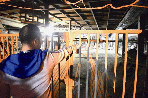 隨后,記者來到事發的簡易工棚,工棚已被鎖起來,但仍隱約可見里面的沙土、水泥堆成小山。