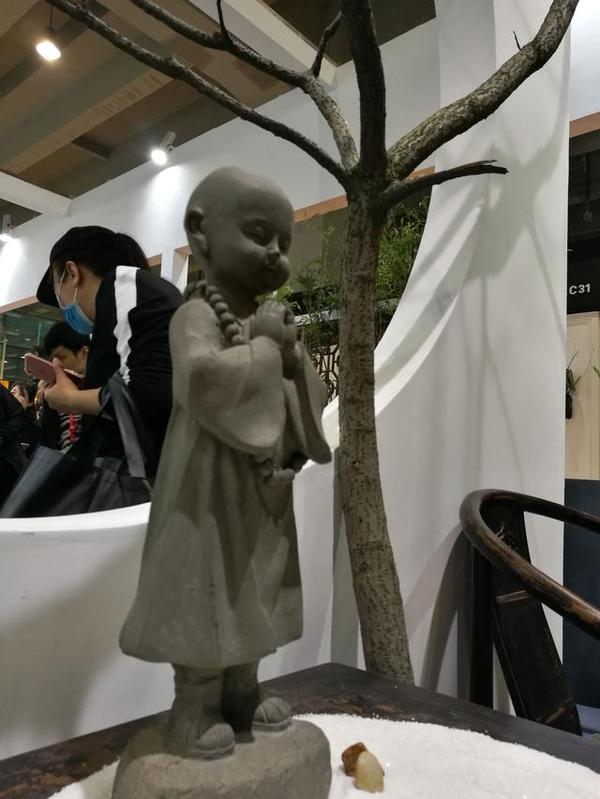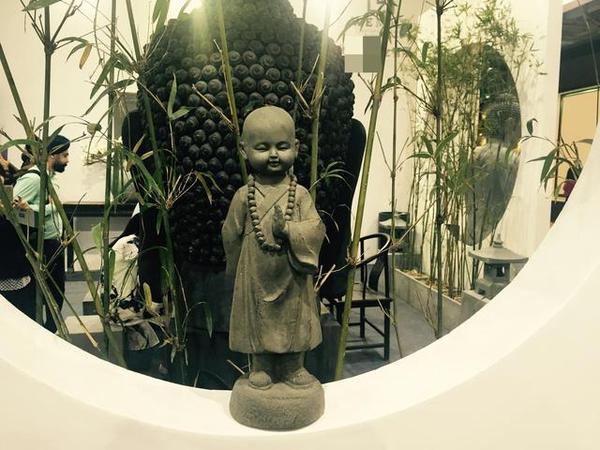 敲木魚的小僧童,造型是不是別有一番滋味。工作人員介紹,因水泥的可塑性,它可以任意制作出各色形狀。但根本上還是源于設計師的創作理念,這種僧侶類水泥工藝品目前在國內還是少有。