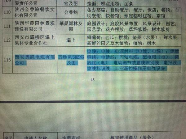 值得注意的是,西安奧凱電纜有限公司的注冊商標和陜西奧凱有限公司注冊商標相同,均為“五勝WUSHENG ”;且兩個公司擁有的“陜西省著名商標”使用商品名錄也相同,均為“電線;電源材料(電線、電纜);絕緣銅線;電話線;同軸電纜;配電箱(電);接線柱(電);電動調節裝置線識別線;電報線;電線標識線;工業遙控操作用電氣設備”。