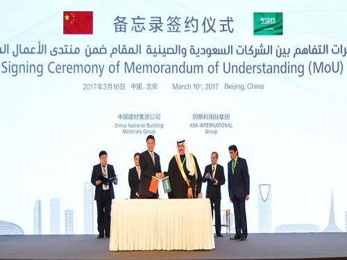 3月16日,在沙特國王薩勒曼訪華其間,中國建材集團作為中方企業代表應邀參加了在中國大飯店舉行的中沙投資論壇系列活動。集團董事長宋志平應薩勒曼國王的特別邀請出席了商界領袖閉門會議。論壇上,中國建材集團與沙特ASK集團簽署了戰略合作協議,受宋志平董事長委托,集團副總經理黃安中代表公司與沙特ASK集團總裁簽署協議。
