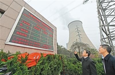 記者看到,大唐灞橋熱電廠門口顯著位置安裝著一塊大顯示屏,公布著廢氣排放口煙塵、二氧化硫、氮氧化物的小時均值監(jiān)測數(shù)據(jù)及排放標(biāo)準(zhǔn),最底下顯示有12369環(huán)保投訴受理電話、廠內(nèi)環(huán)保部門負(fù)責(zé)人電話。
