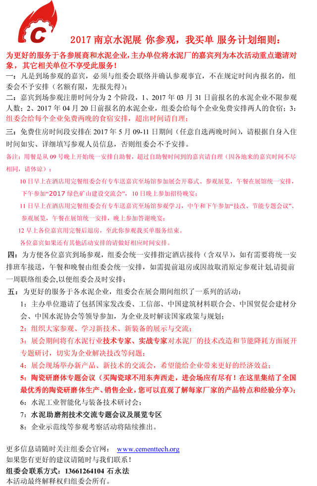 附:2017南京水泥展 你參觀,我買單 服務計劃細則: