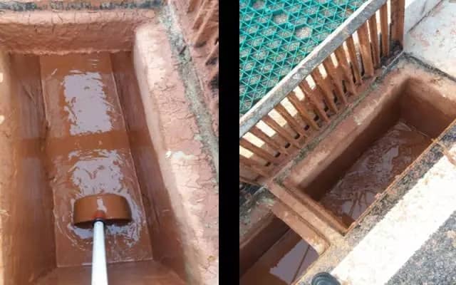 該公司罐裝車正在污水沉淀池旁進行清洗