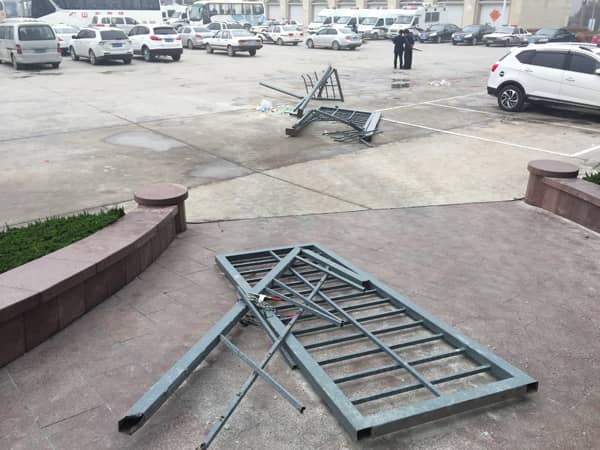 山水集團(tuán)辦公樓鋼結(jié)構(gòu)大門(mén)遭破壞