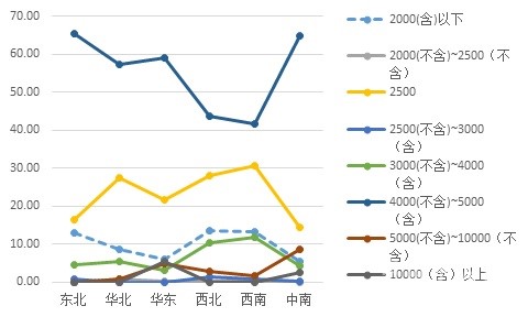 圖3:六大區域新型干法熟料生產線按規模分布情況(%)