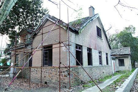 可以看到,一處“難民醫院”外墻搭起了腳手架,像是要進行修繕,外墻上標著“江南水泥廠民國時期建筑風貌區”的牌子。