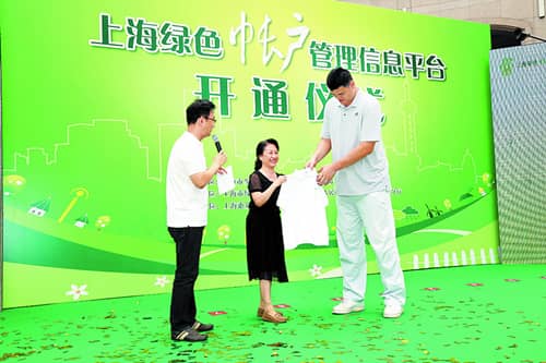 2014年9月16日,在上海靜安寺廣場舉行的上海“綠色帳戶”信息化平臺開通儀式上,全國政協委員、著名運動員、熱心市民姚明向市民朋友們呼吁,積極參與垃圾分類,一起為上海的環境更美而努力。