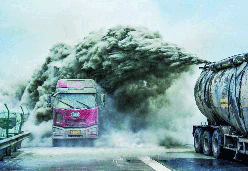 雖然已經過去很久,但是說起拍照當天的情景,姜豪仍然記憶猶新。那天他和同事接到高速路段上發生緊急事故的報警后,迅速趕到事故現場。現場起火的貨車停靠在硬路肩上,車廂里不斷有黃色濃霧冒出,還夾雜著黑煙和火苗。
