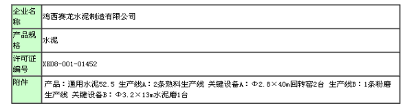 該項目是黑龍江省工信委2012年12月6日以“等量置換”的名義核準批復的。按《關于雞西賽龍水泥制造有限公司等量置換建設2500t/d熟料新型干法水泥生產線項目(帶純低溫余熱發電)核準的批復》(黑工信原發[2012]592號文),同意雞西賽龍水泥公司現有的兩條直徑2.8×40米預分解窯生產線(總計年產30萬噸),等量置換建設一條日產2500噸新型干法生產線(年產75萬噸)。