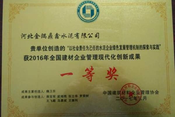 以質(zhì)量贏信譽(yù),以服務(wù)贏市場(chǎng)。通過質(zhì)量制度的保證、先進(jìn)工藝的引進(jìn)、優(yōu)良的售后服務(wù)等,不斷提高品牌的知名度、美譽(yù)度,“鼎鑫”牌水泥先后獲得了“河北省名牌產(chǎn)品”、“河北省著名商標(biāo)”等多項(xiàng)殊榮。并成為水泥行業(yè)率先通過產(chǎn)品、質(zhì)量、安全、環(huán)境、能源、測(cè)量六位一體管理體系認(rèn)證的企業(yè),是石家莊市工業(yè)50強(qiáng)和鹿泉市工業(yè)20強(qiáng)企業(yè)之一,并入圍“國家重點(diǎn)支持60家水泥工業(yè)結(jié)構(gòu)調(diào)整大型企業(yè)”名單。被國家發(fā)改委、工信部、環(huán)保部以及水泥協(xié)會(huì)等聯(lián)合評(píng)定為全國5000家水泥企業(yè)中的16家能效領(lǐng)跑企業(yè)之一,也是全國大型集團(tuán)環(huán)保標(biāo)桿企業(yè)。公司還是石家莊市唯一一家獲得第三屆石家莊市政府質(zhì)量獎(jiǎng)組織獎(jiǎng)和個(gè)人獎(jiǎng)雙項(xiàng)獎(jiǎng)項(xiàng)的單位,也是建材行業(yè)唯一一家獲得中國質(zhì)量協(xié)會(huì)2016年全國實(shí)施卓越績(jī)效模式先進(jìn)企業(yè)稱號(hào)的單位,榮獲2016年度河北省推行卓越績(jī)效模式優(yōu)秀企業(yè)稱號(hào)。