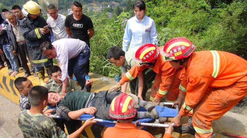 13時(shí)30分,吊車從城區(qū)趕到現(xiàn)場(chǎng)開展起吊作業(yè),為了保證起吊時(shí)平穩(wěn)可靠,不對(duì)被困人員造成二次傷害,救援官兵負(fù)責(zé)保護(hù)。“起吊!”,隨著現(xiàn)場(chǎng)指揮員的一聲令下,貨車車頂被成功吊起。隨后救援官兵利用液壓擴(kuò)張器,鉆入副駕駛室一側(cè),在車內(nèi)的夾縫中實(shí)施擴(kuò)張救援。15分鐘后,被困人員的被卡部位開始松動(dòng),救援人員立即將被困人員從車內(nèi)一個(gè)一個(gè)抬出,并抬上擔(dān)架送上救護(hù)車緊急送往醫(yī)院進(jìn)行救治。