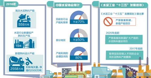 《規劃》提出,隨著我國水泥新的增量需求放緩,加上新增產能仍不斷增加,產能過剩的矛盾日益突出,全行業產能利用率不足70%,部分地區不足50%。全行業生產、銷售、價格和效益起伏不定,多數中小企業經營困難。去產能、調結構、穩增長、增效益將成為“十三五”時期水泥行業供給側結構性改革的主要任務。
