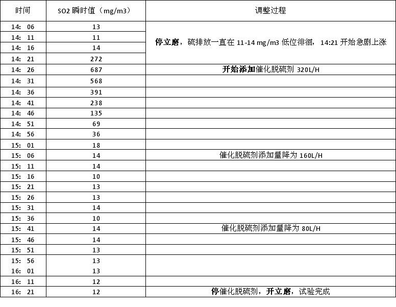 本次試用催化脫硫劑期間排放數據如下: