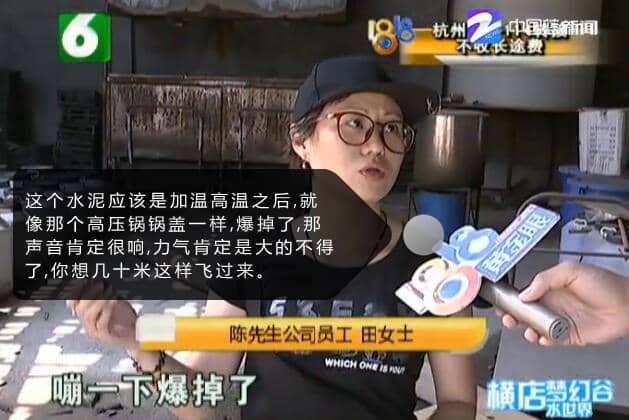 田女士后來得知,蓋子是從隔壁一家工廠的水泥攪拌罐上飛來的。