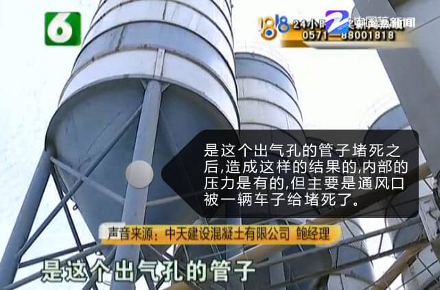 嘉興桐鄉的陳先生反映,6日下午兩點,一個水泥罐蓋子飛進他們公司,砸在倉庫頂上,損失嚴重。
