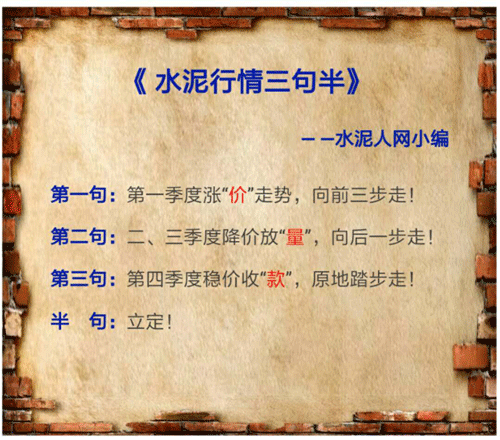 水泥銷售有段經典的《三句半》,可以很好的概括水泥市場一整年的行情: