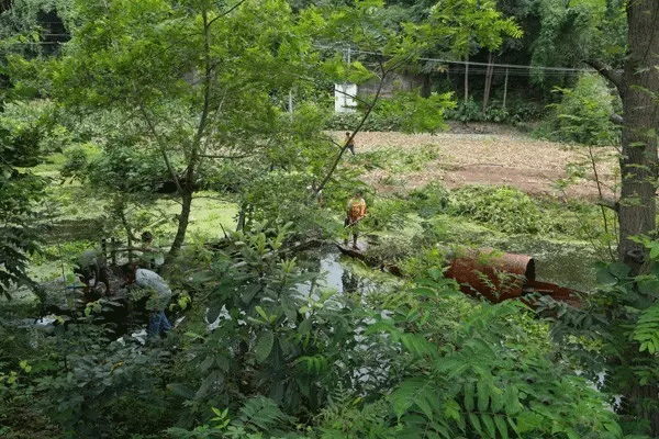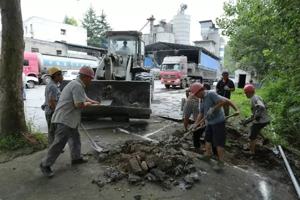 8月11日上午,記者在宇基水泥廠看到,工廠已全面停產,在廠區水泥排料口已進行密封處理;在廠房河道附近,工人們正在緊張建設水槽、沉砂池、限流井,以保證廢水過濾處理;河道上,工人們正在進行打撈水葫蘆和撈淤整治。