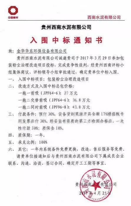 在西南水泥窯頭、窯尾布袋除塵器,許多由華東環保生產提供,在水泥企業有非常好的口碑,對裝包裝車除塵器,貴州西南水泥采用走出去實地考察使用效果、設備配置、制造質量、企業信譽,2017年6月優先在貴州瑞溪西南水泥有限公司、貴州織金西南水泥有限公司試用,得到所屬水泥企業認可,以吸風效果好、收塵率高、操作方便,迅速在貴州西南水泥26家水泥廠全面安裝該除塵系統。