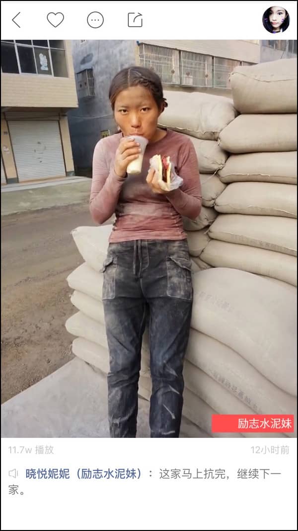 被稱作“網紅水泥妹”的她,在視頻里扎著高馬尾,嫻熟利落地將一袋袋水泥搬上車或卸下,頭發、臉部、四肢都落滿水泥粉塵。