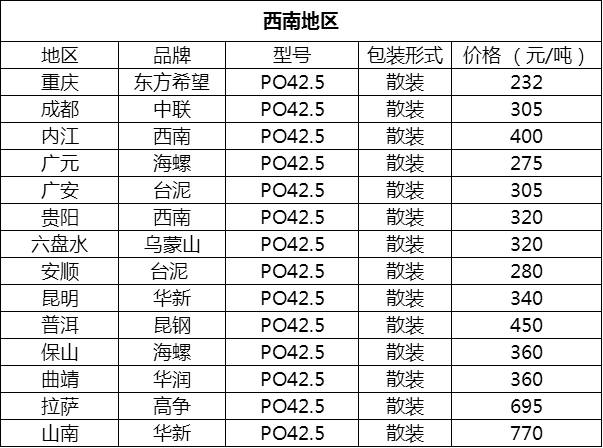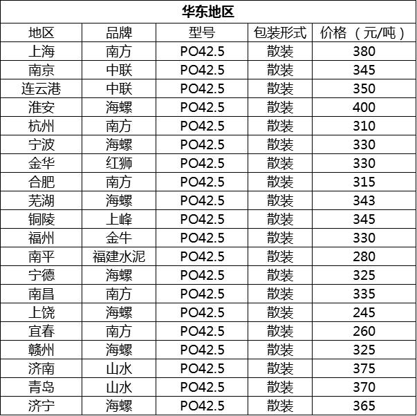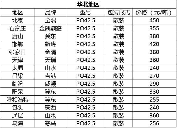 【水泥人網】隨著京津冀及周邊地區的秋冬季錯峰生產以及采暖整體停窯的影響,再加上水泥龍頭中國建材之前的規劃,未來三個月將實現每月一漲的節奏。龍頭企業的帶動以及停窯的影響,各地水泥價格勢必會出現一定程度的上漲,我們將全國各重點區域水泥價格整理如下: