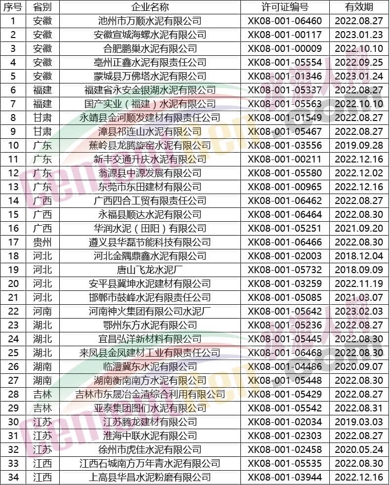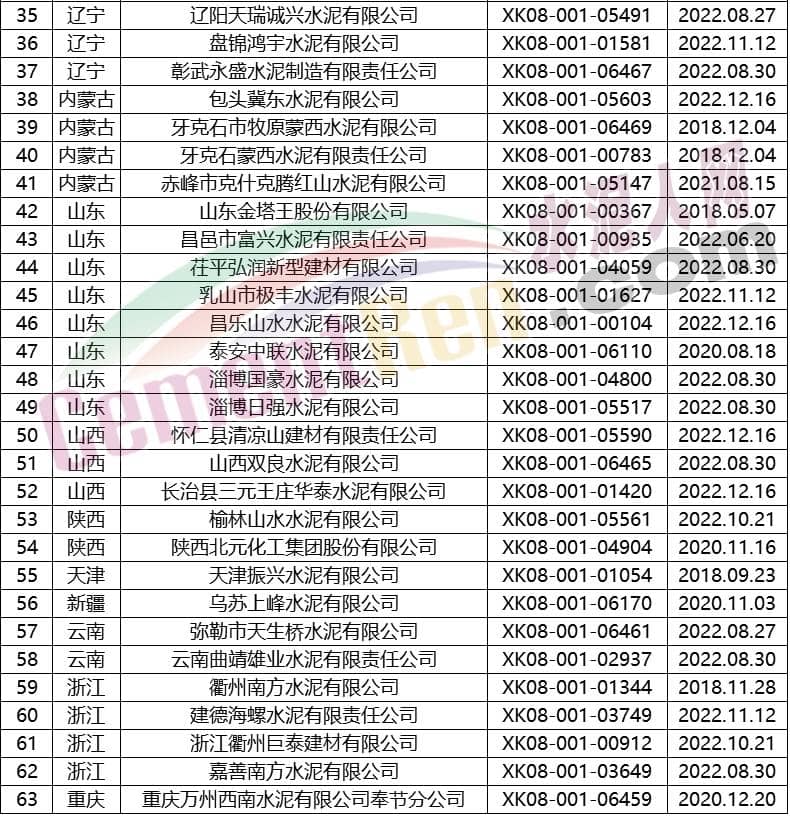 名單 | 最新一批獲證企業名單發布 涉及63家水泥企業(附名單)