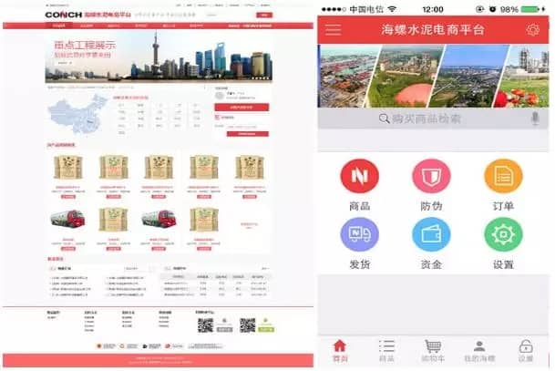 圖1 海螺水泥電商平臺PC端和移動端截圖