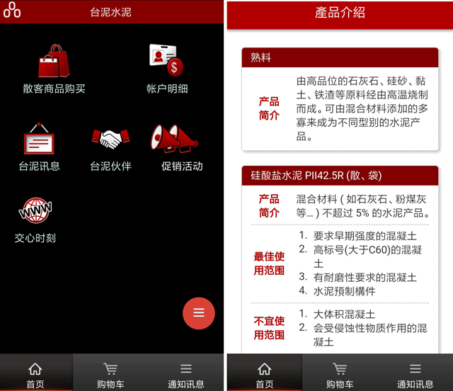 圖4 臺泥水泥手機(jī)客戶端界面截圖