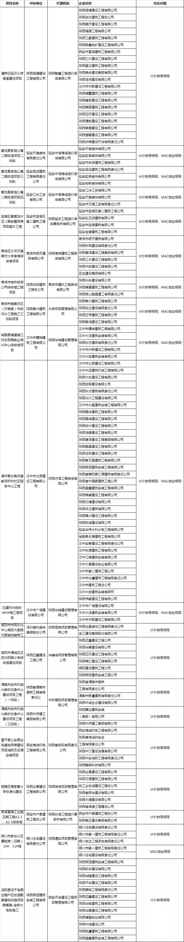 此次督查中首次使用信息化數據分析手段,對2015年月1日以來,國有投資房建市政工程及部分專業工程為主的建設工程項目中串通投標行為進行認定。經分析比對,存在不同投標單位的計價鎖號相同或MAC地址相同等行為。現對目前查處的涉嫌串通投標企業名單予以公布。