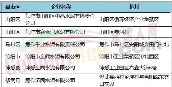 四、焦作市六家熟料生產(chǎn) 線均無特種水泥生產(chǎn) 。將于2017年11月15日至2018年3月15日全部停產(chǎn)。其中馬村區(qū)焦作千業(yè)水泥有限責(zé)任公司由焦煤供電處供電,不用電網(wǎng)的電。