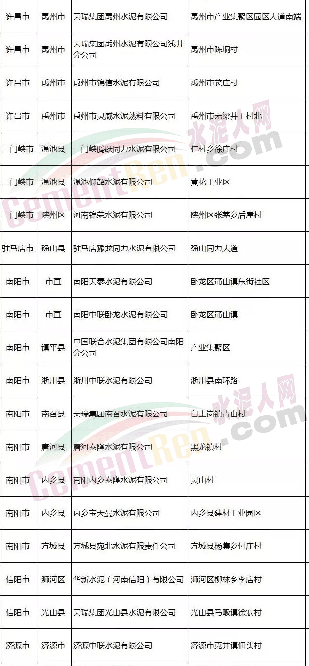 五、許昌市 、三門峽市、駐馬店市、南陽市、信陽市、濟(jì)源市水泥企業(yè)將于2017年11月15日至12月31日,全部停產(chǎn);2018年1月1日至1月31日,恢復(fù)生產(chǎn);2018年2月1日至3月15日,再次全部停產(chǎn)。其中華新水泥(河南信陽)有限公司熟料生產(chǎn)線有水泥窯協(xié)同處理保民生任務(wù)。
