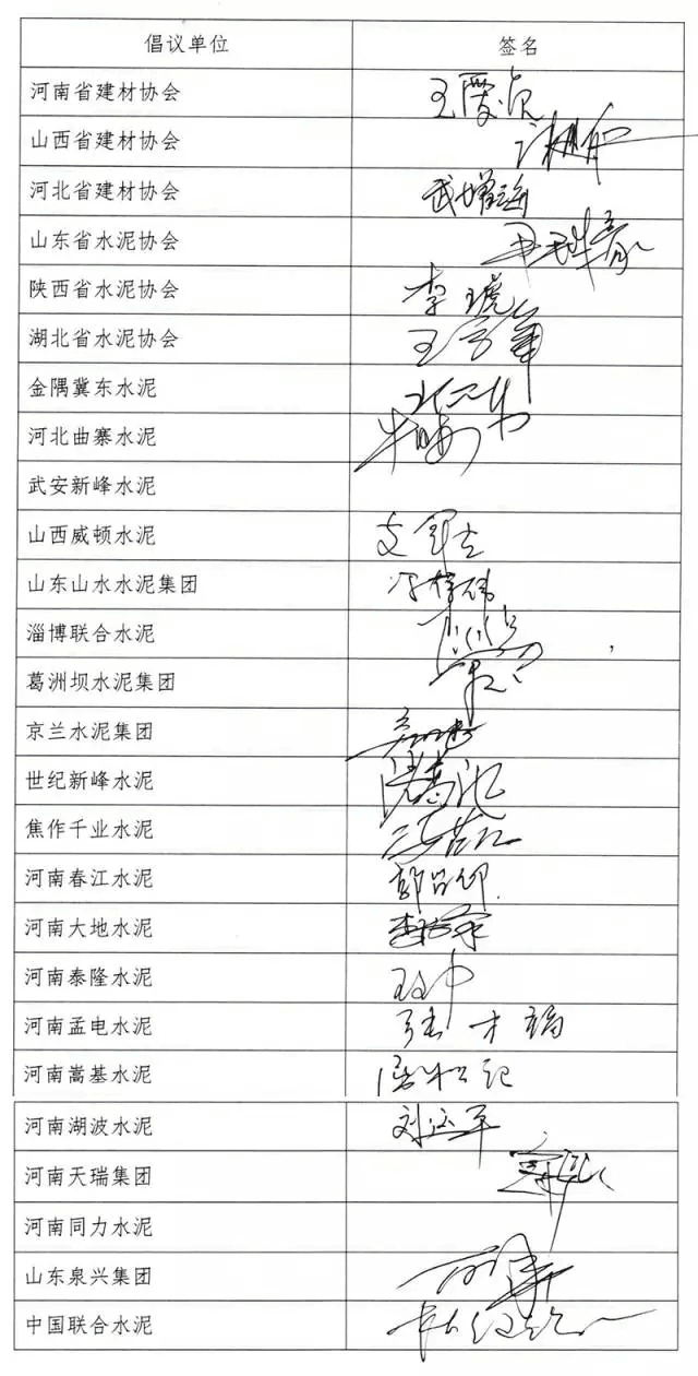 最新消息,河南省建材協會、山西省建材協會、河北省建材協會、山東省水泥協會、陜西省水泥協會、湖北省水泥協會等6家水泥協會及金隅冀東水泥、河北曲寨水泥、武安新峰水泥、山西威頓水泥、山東山水水泥集團、淄博聯合水泥、葛洲壩水泥集團、京蘭水泥集團、世紀新峰水泥、焦作千業水泥、河南春江水泥、河南大地水泥、河南泰隆水泥、河南孟電水泥、河南嵩基水泥、河南湖波水泥、河南天瑞集團、河南同力水泥、山東泉興集團、中國聯合水泥等20家水泥集團企業聯合向水泥協會發出《關于全面落實建材行業2017-2018冬季錯峰生產的建議》函,建議函由以上6地區水泥建材行業協會和18家水泥集團企業共同簽字。