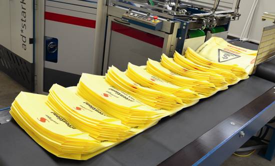 AD*STAR袋已被開發(fā)用于優(yōu)化現(xiàn)代水泥生產(chǎn):可提高水泥的生產(chǎn)效率和可持續(xù)性,減少產(chǎn)品損失,使工作環(huán)境更加健康。二十世紀九十年代中期,史太林格奧地利有限公司已經(jīng)獲得這項技術(shù)的專利,材料的特性首先決定了AD*STAR袋的牢固性和耐用性。其次起決定作用的就是特殊的生產(chǎn)工藝。它從擠出的聚丙烯扁絲開始,通過拉伸和定型獲得強力和延伸性。然后扁絲被織成筒布,并在外面涂覆一層聚丙烯涂膜。涂層的平均厚度為20UM,涂層持久耐用,保證了袋子的密封性,由此防止物體受潮以及隔絕其他外部影響。與縫底袋最大的不同在于制袋工藝,涂膜后的聚丙烯扁絲編織筒布被放置在專門研發(fā)的制袋機上,對筒布施加熱空氣和壓力。熱空氣首先軟化聚丙烯涂膜層,然后閥口,頂貼和底貼被固定在被折疊的袋子底部并進行冷卻。這過程生產(chǎn)出緊密,結(jié)實,耐用的方底閥口袋。袋子的形狀可以是方底開口袋,普通閥或口袋閥袋子,也可以根據(jù)實際需求調(diào)整袋子的形狀。制袋機配備電磁輸送系統(tǒng),防止用來包裝產(chǎn)品的布料出現(xiàn)小孔,使產(chǎn)品完全密封。在填充高排氣性要求貨物時,可以使用通過微打孔單元處理的袋子,在具備高透氣性的同時保證了貨物的零損漏。如今,全球150家工廠每年生產(chǎn)超過80億只AD*STAR袋。